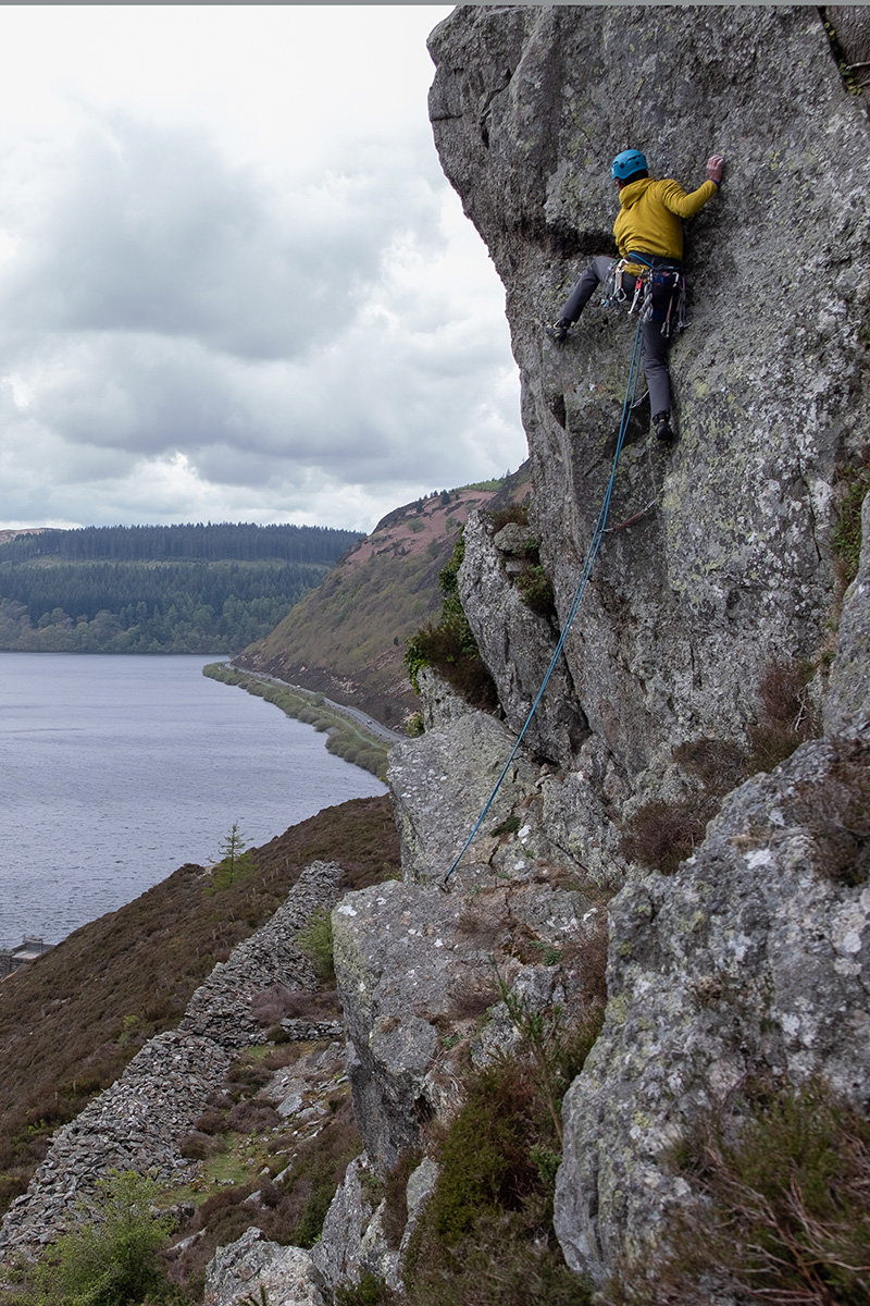 PHOTO | Contour Instructor Bob Thomas leading Little Coch E1 (5b) on Canopy Buttress | Elan Valley